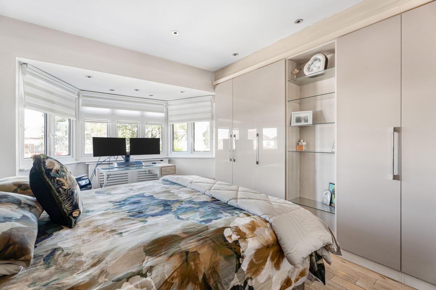 BEDROOM 2 (5.11m x 3.40m (16'9 x 11'2)) Double-glazed bay window to rear with radiator beneath, fitted wardrobes, solid oak flooring, spotlights to ceiling & neutral decor.